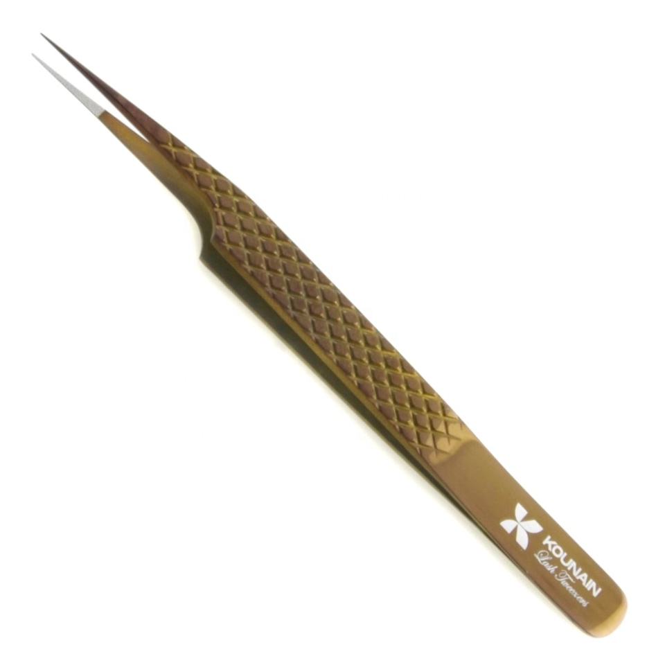 KOUNAIN 12 13 14cm Stainless Steel Eyelash Tweezers Straight Isolation Nano Fiber Extra Sharp Fine Point Lash Tools