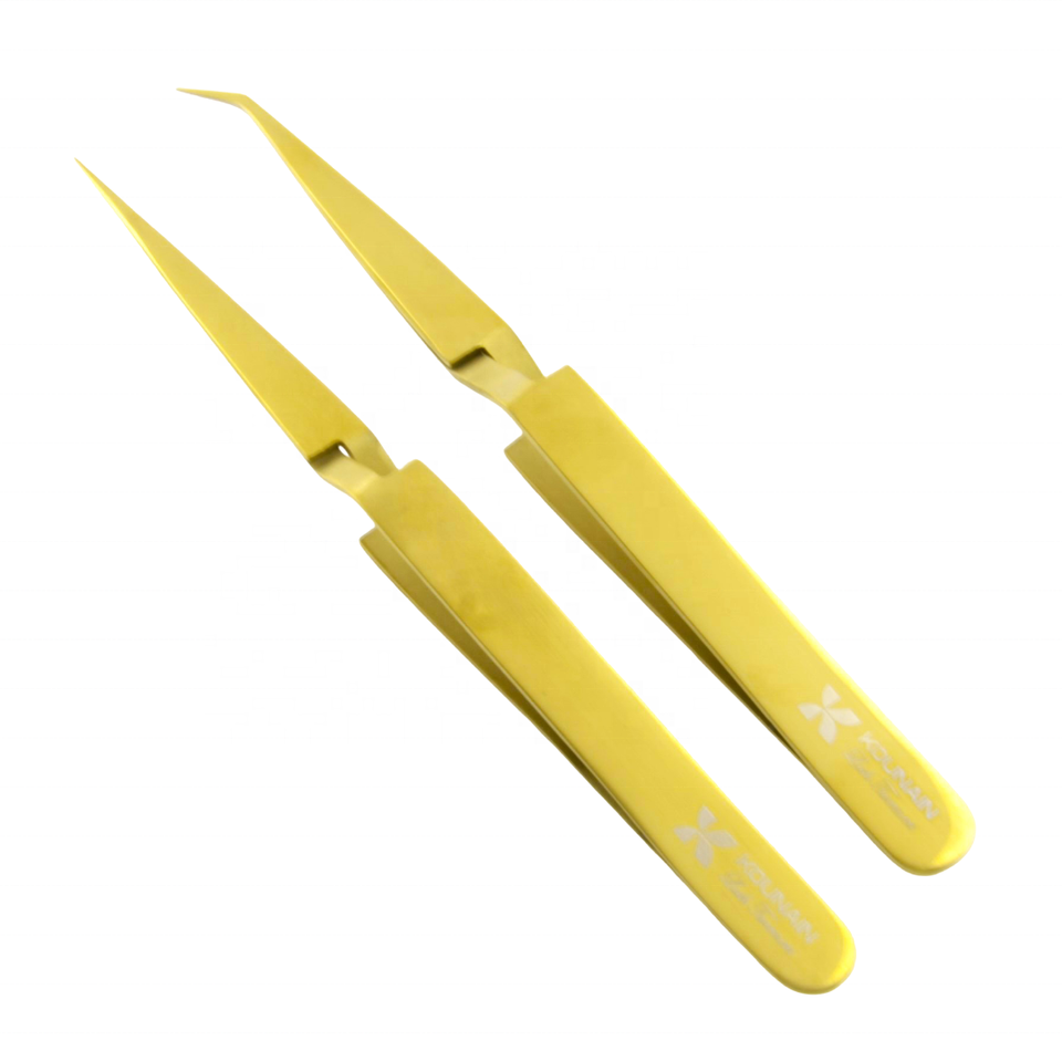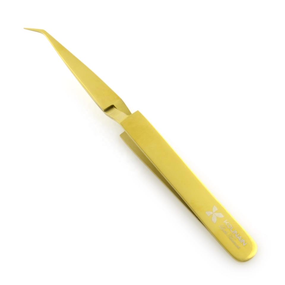 Kounain แหนบต่อขนตาสแตนเลส12ซม., แหนบต่อขนตาสีทองแบบโค้งตรงปลายแหลม