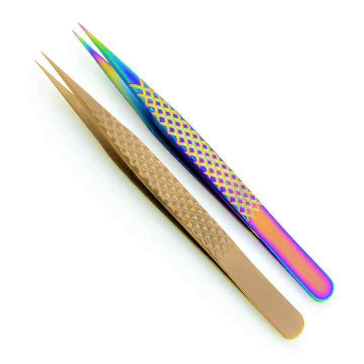 Kounain แหนบต่อขนตาอนินาโนสแตนเลสสตีล0.03มม., อุปกรณ์หนีบขนตาพลาสม่าสีน้ำเงิน90องศาสำหรับมืออาชีพ