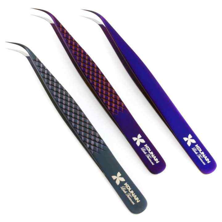 Kounain แหนบต่อขนตา45องศาแยกได้ทำจากสเตนเลสอุปกรณ์เสริมความงามเพิ่มวอลลุ่มเส้นใยนาโน