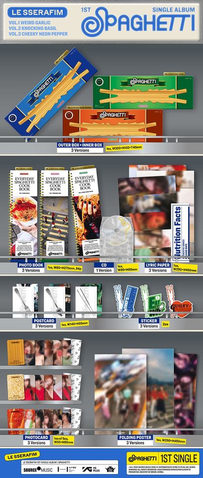 อัลบั้มซิงเกิลชุดที่ 1 ของวงเคป๊อป LE SSERAFIM รุ่น SPAGHETTI อัลบั้มมาตรฐานอย่างเป็นทางการ วงไอดอลเกาหลี ของสะสมเพลงป๊อป ซีดี ของขวัญสำหรับแฟนๆทุกวัย