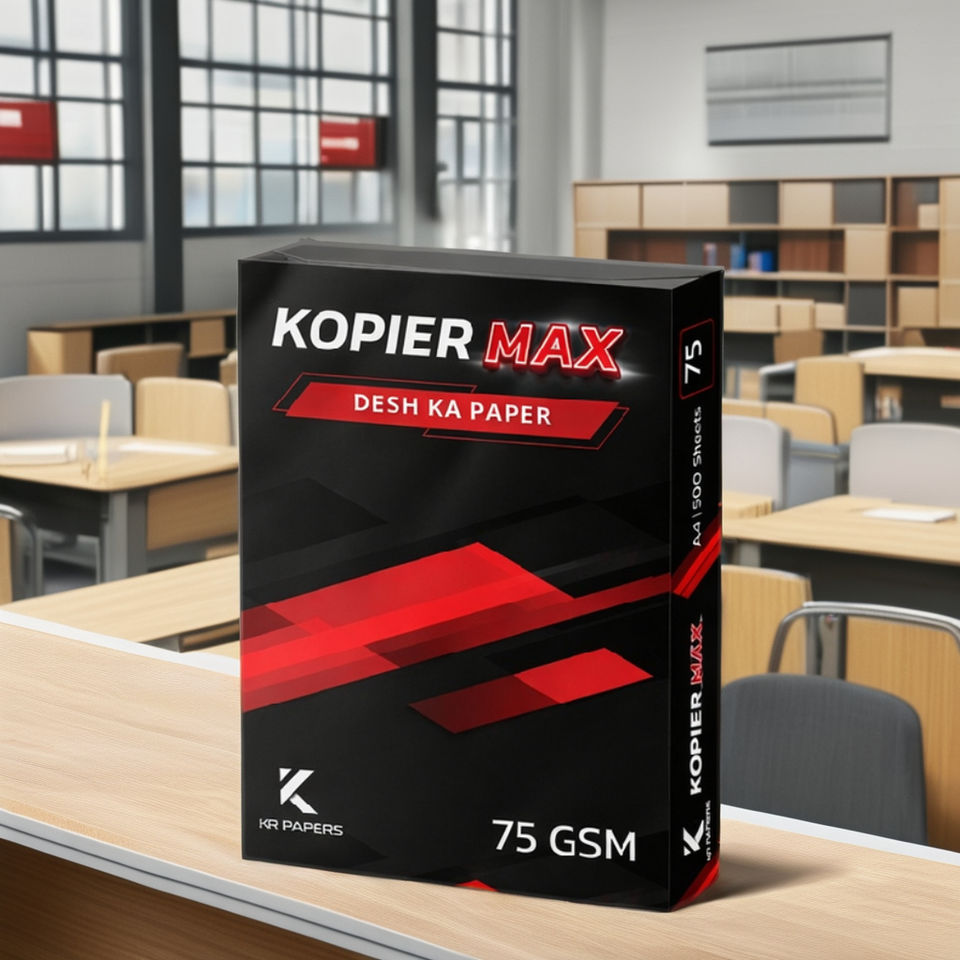 กระดาษสำนักงาน KR Kopier Max A4 สีขาวพรีเมียม เป็นมิตรกับสิ่งแวดล้อม 75 แกรม ได้รับการรับรองมาตรฐาน ISO ผลิตจากเยื่อกระดาษชานอ้อยบริสุทธิ์ พิมพ์ได้สองหน้า จำหน่ายเป็นม้วน