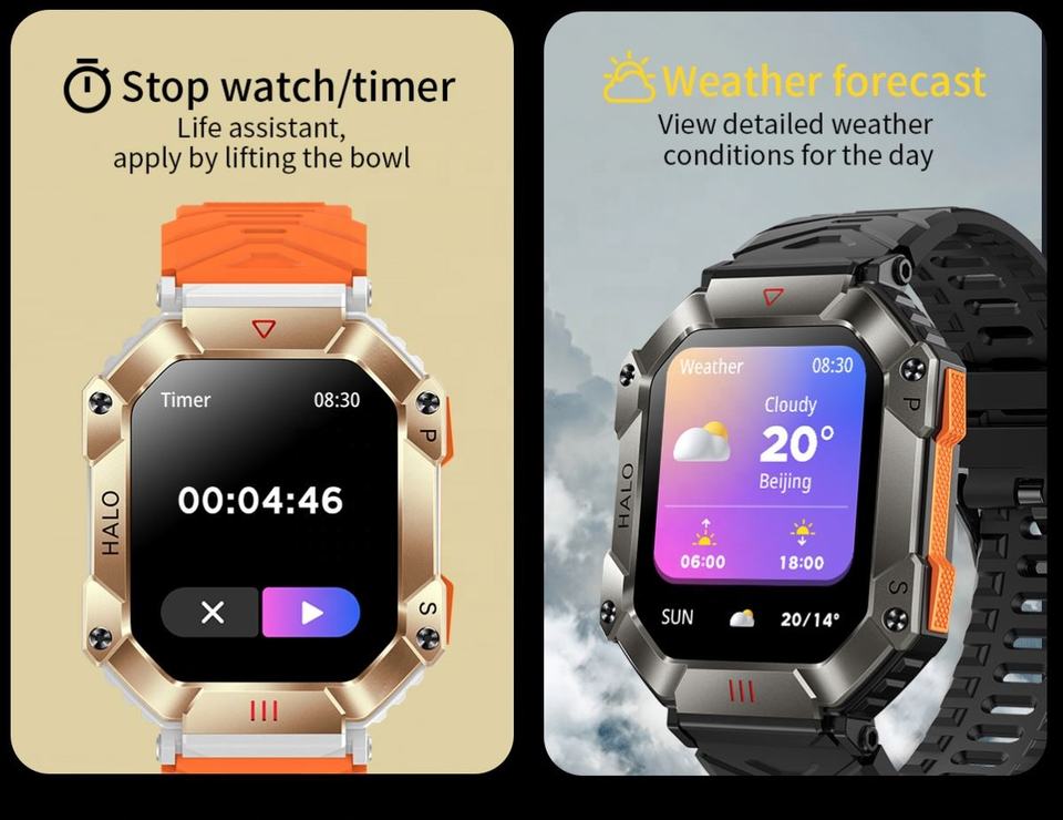 KR80ดูสมาร์ทวอทช์กลางแจ้ง2023 BT Call 620mAh รองรับความสูงฟังก์ชันเข็มทิศวัดความกดอากาศในตัว4มินิเกม