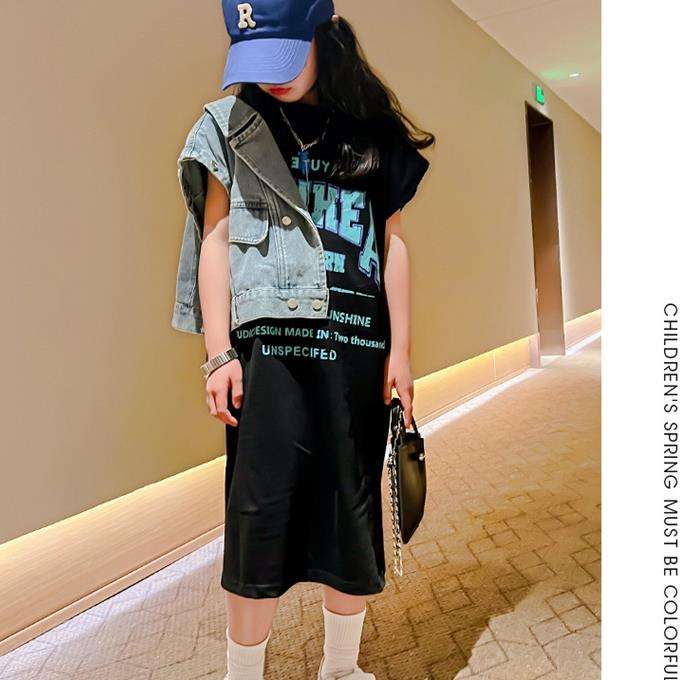 เดรสเสื้อยืดพิมพ์ลายแฟชั่นสำหรับเด็กผู้หญิง รุ่น KS0593 ชุดเดรสยาวสำหรับวัยรุ่นหญิง