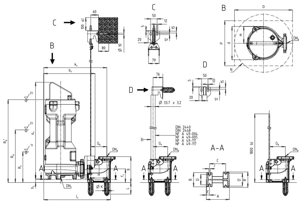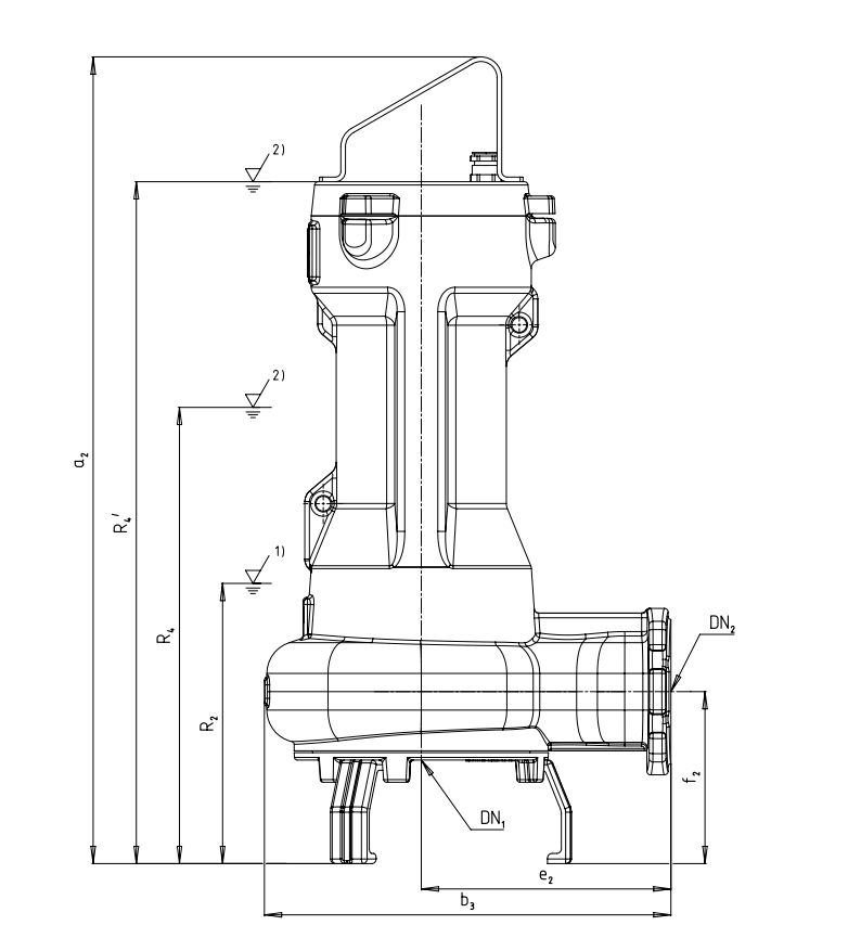 ปั๊ม KSB Amarex CN ปั๊มจุ่มแบบเหล็กหล่อขั้นตอนเดียวพร้อมใบมีดตัด ติดตั้งแบบเคลื่อนที่ได้โดยตรง