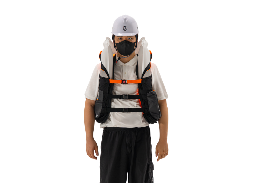 เสื้อกั๊กนิรภัยอัจฉริยะ KSNT Tailored Fall Protect AIRCHAC ระบบป้องกันอุบัติเหตุทางอุตสาหกรรม ระบบถุงลมนิรภัยแบบสวมใส่ ระบบเติมลมภายใน 0.2 วินาที ใช้งานได้นาน 20 ชั่วโมง สำหรับป้องกันการตก