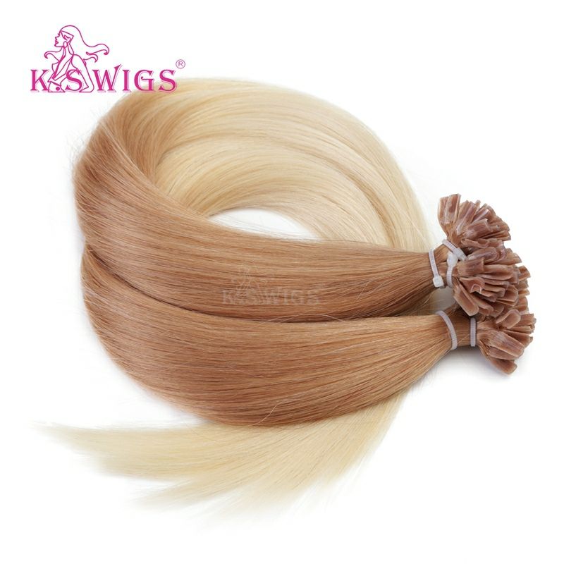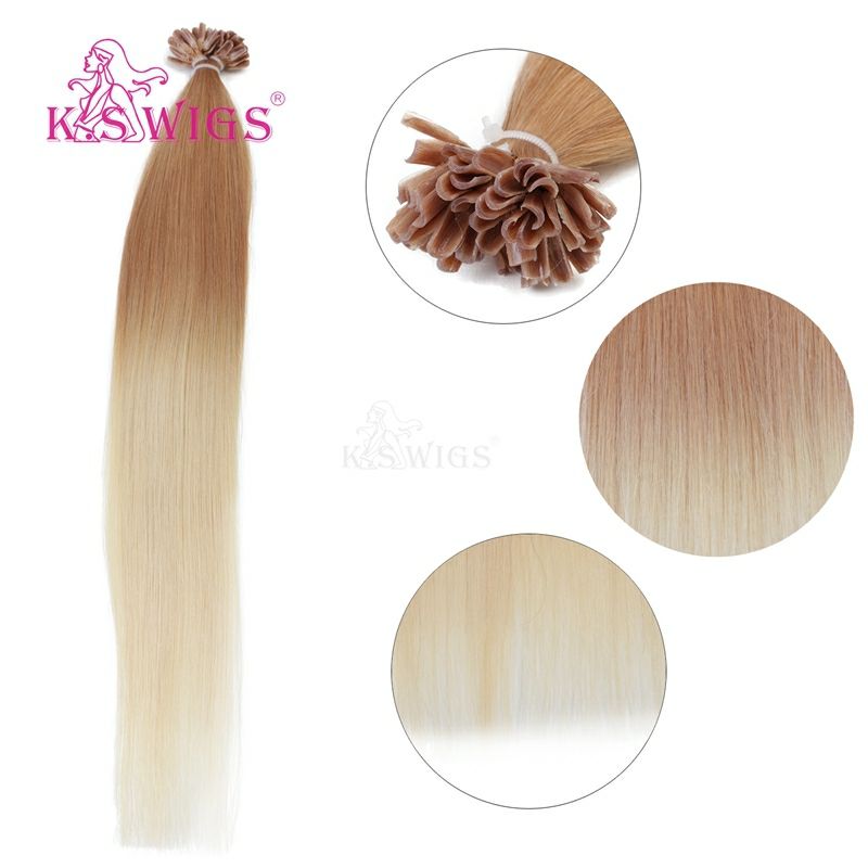 KSWIGS วิกผมสวยงาม ขนาด 12-28 นิ้ว | ผมบลอนด์/น้ำตาล จัดแต่งทรงผมแบบซันคิส | สร้างผมต่อแบบเกาหลีที่ดูหนาแน่นด้วยผมแท้บริสุทธิ์ชนิด U-Tip