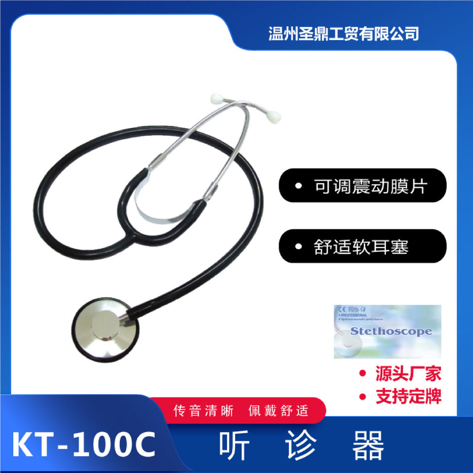เครื่องฟังเสียงหัวใจแบบข้างเดียวสำหรับผู้ใหญ่ รุ่น KT-100C พร้อมคอยล์ป้องกันความเย็น วัสดุเหล็กแบบแมนนวล รุ่นส่งออก