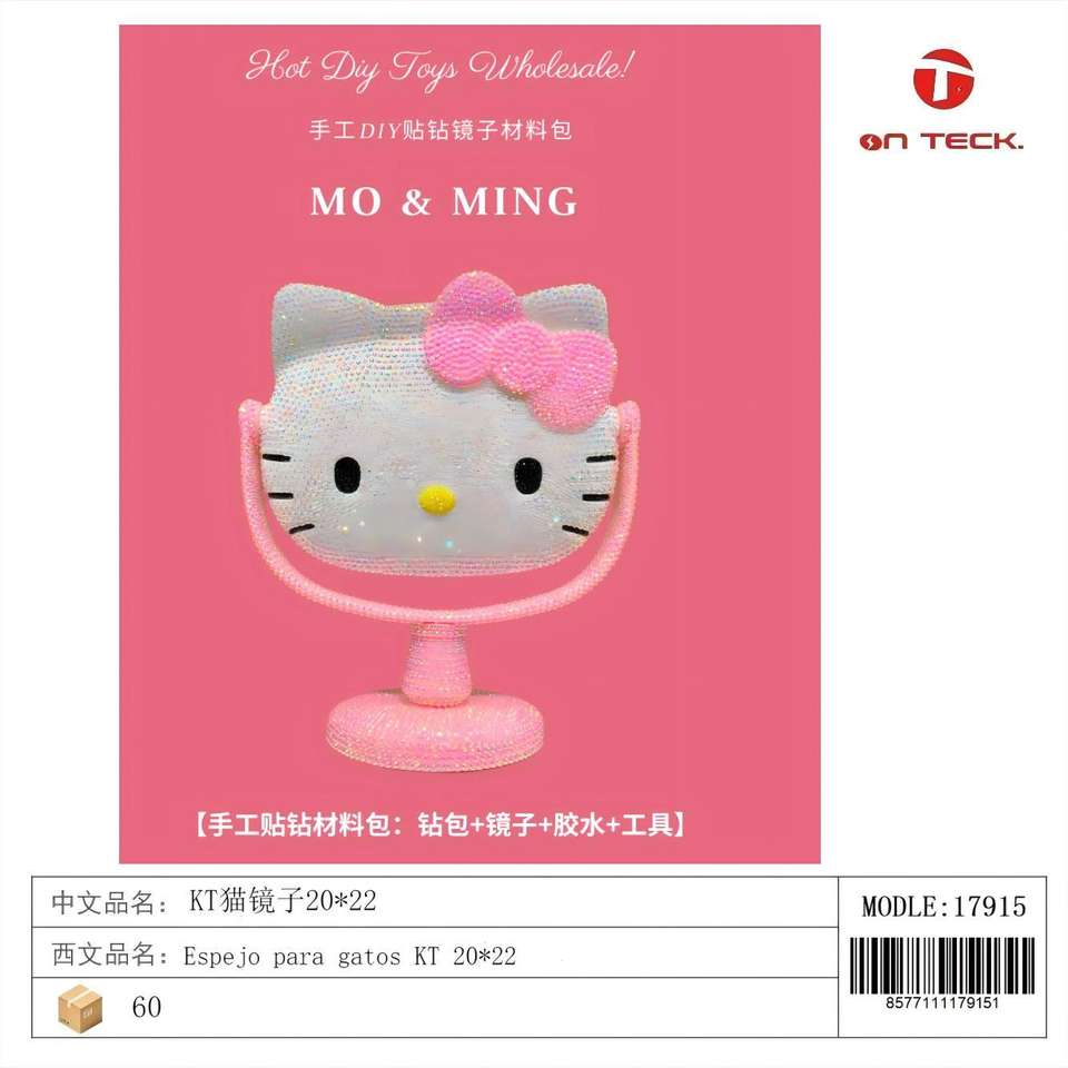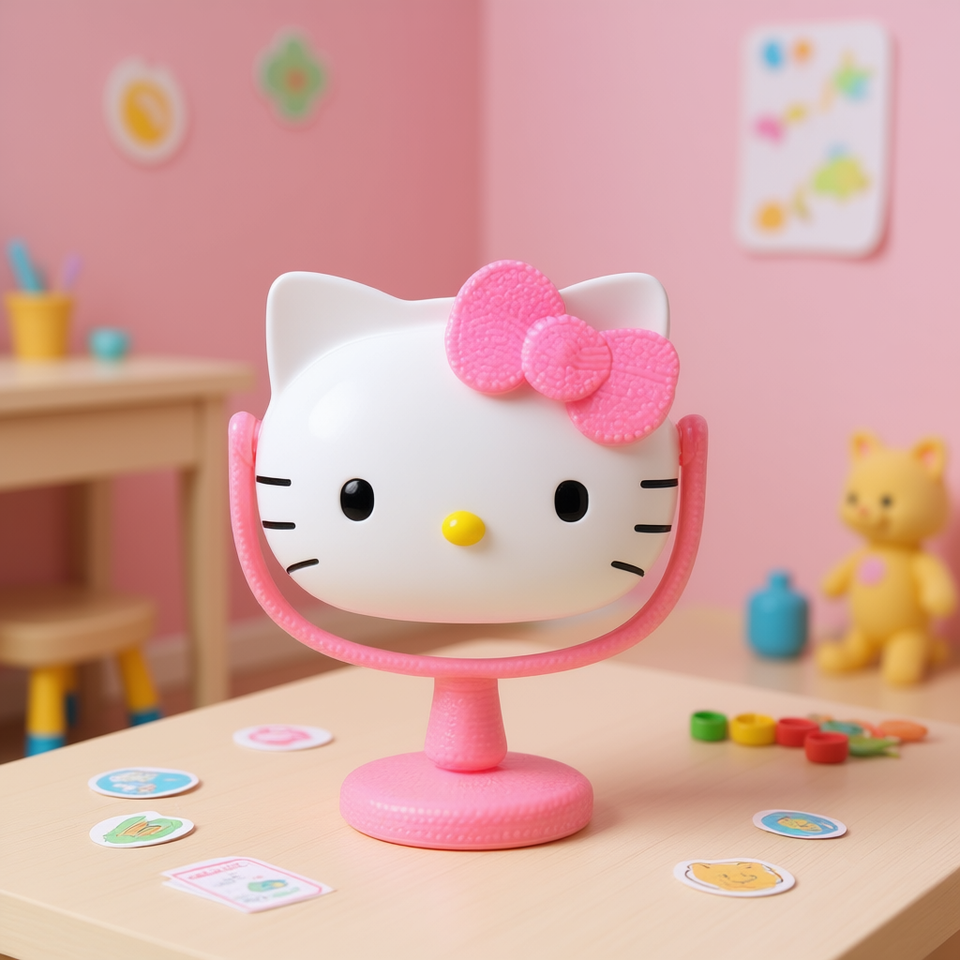 โมแอนด์หมิง เคที แคท มิเรอร์ 20x22 ซม. อุปกรณ์เสริมบนโต๊ะพลาสติกสำหรับเด็กผู้หญิง