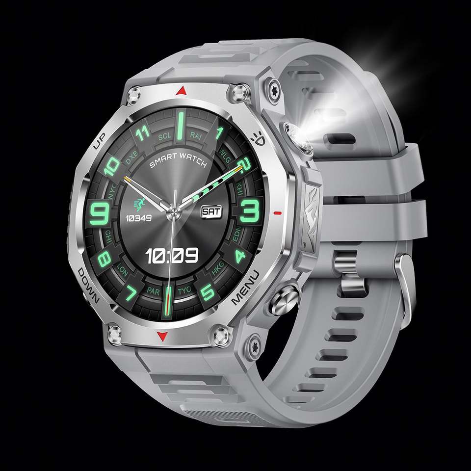 นาฬิกาสมาร์ทวอทช์ KT85 สำหรับผู้ชาย พร้อมไฟฉาย กันน้ำ IP68 แบตเตอรี่ใช้งานได้นาน รองรับโหมดกีฬามากกว่า 100 โหมด ฟิตเนสแทรคเกอร์ หน้าจอ AMOLED ซิลิโคน
