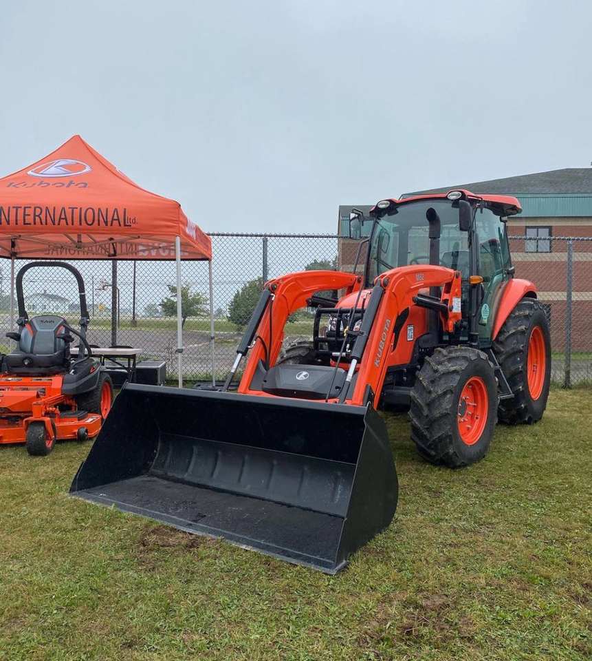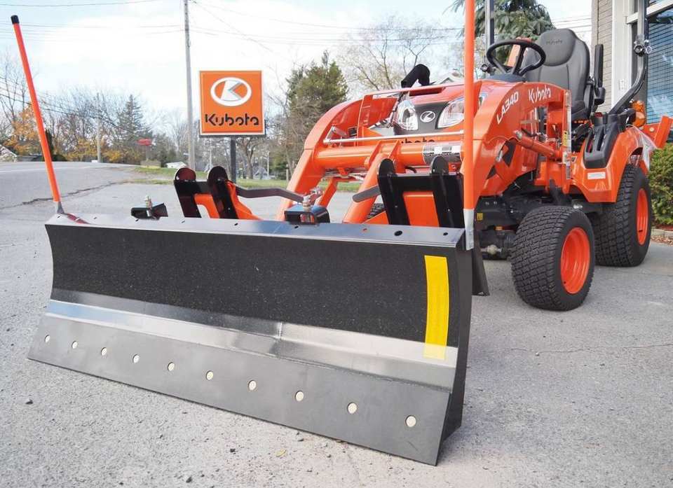 Kubota รถแทรกเตอร์ล้อมือสองพร้อมเครื่องยนต์เพอร์กิ้นส์ติดตั้งเครื่องเป่าหิมะและดาดฟ้าตัดหญ้าขนาดกลางสำหรับฟาร์ม