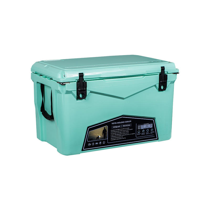 กล่องเก็บความเย็น KUER-C แบบ Rotomolded ขนาด 60 ควอร์ต 56.8 ลิตร สำหรับตั้งแคมป์กลางแจ้ง พร้อมฝาปิดสีดำและหูหิ้ว