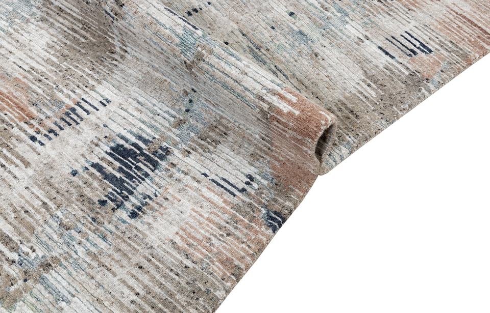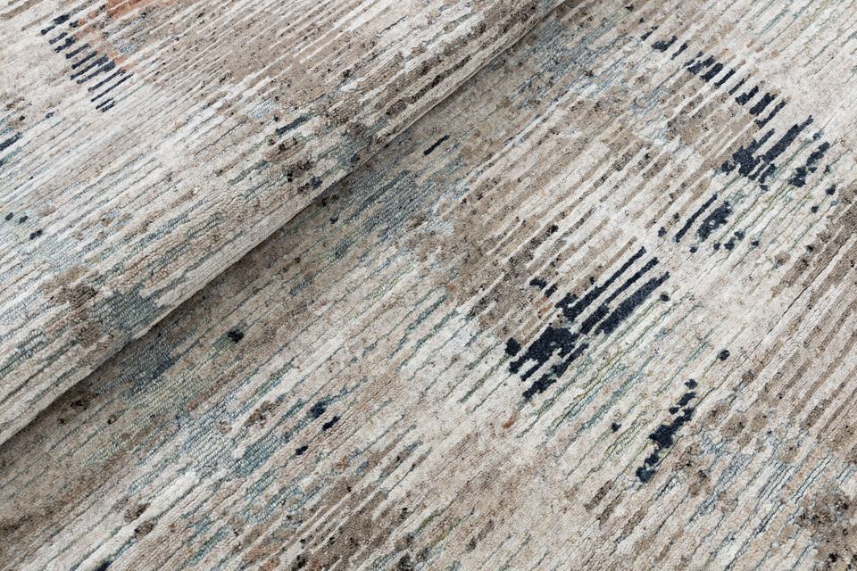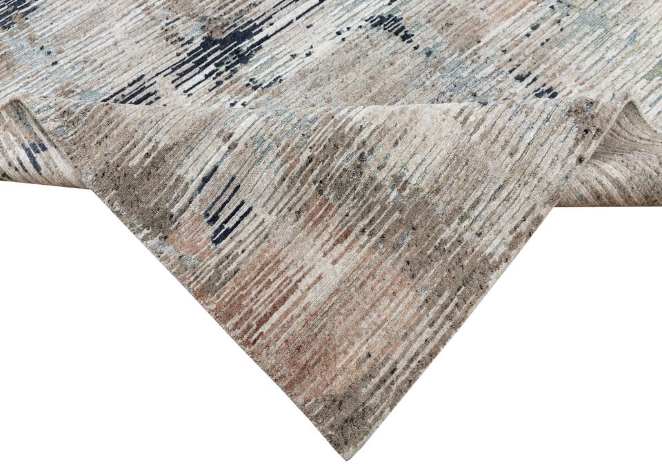 พรมทิเบตทำมือลายเรขาคณิตทันสมัย รูปทรงสี่เหลี่ยมผืนผ้า ปักด้วยไหมทอผสมใยเทนเซล ป้องกันคราบ ขนปานกลาง