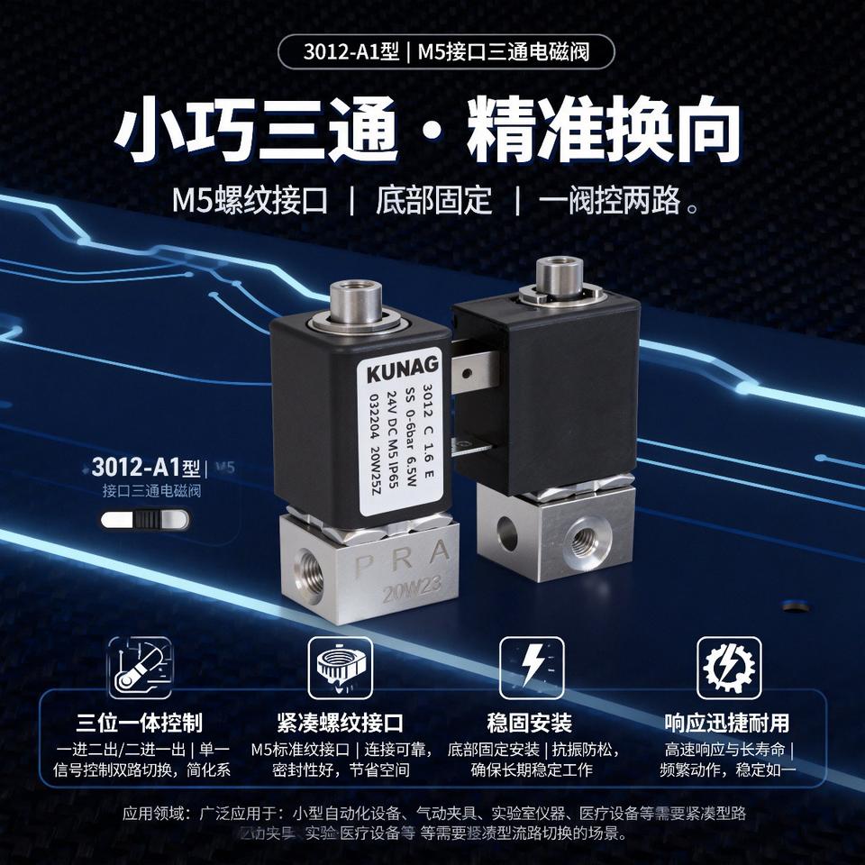 Kunag โซลินอยด์วาล์ว3ทาง3012-A1 M5ก้นคงที่สำหรับควบคุมน้ำ