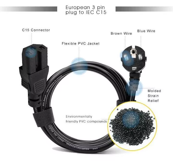 Kuncan VDE 16A 3ขาแบบยุโรปปลั๊ก250V H05VV-F สายไฟ C15มาตรฐาน IEC สำหรับกระทะไฟฟ้า