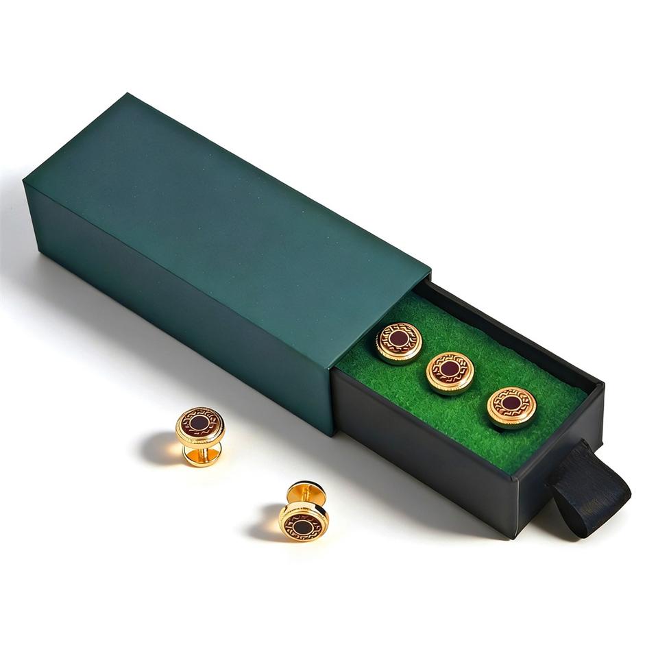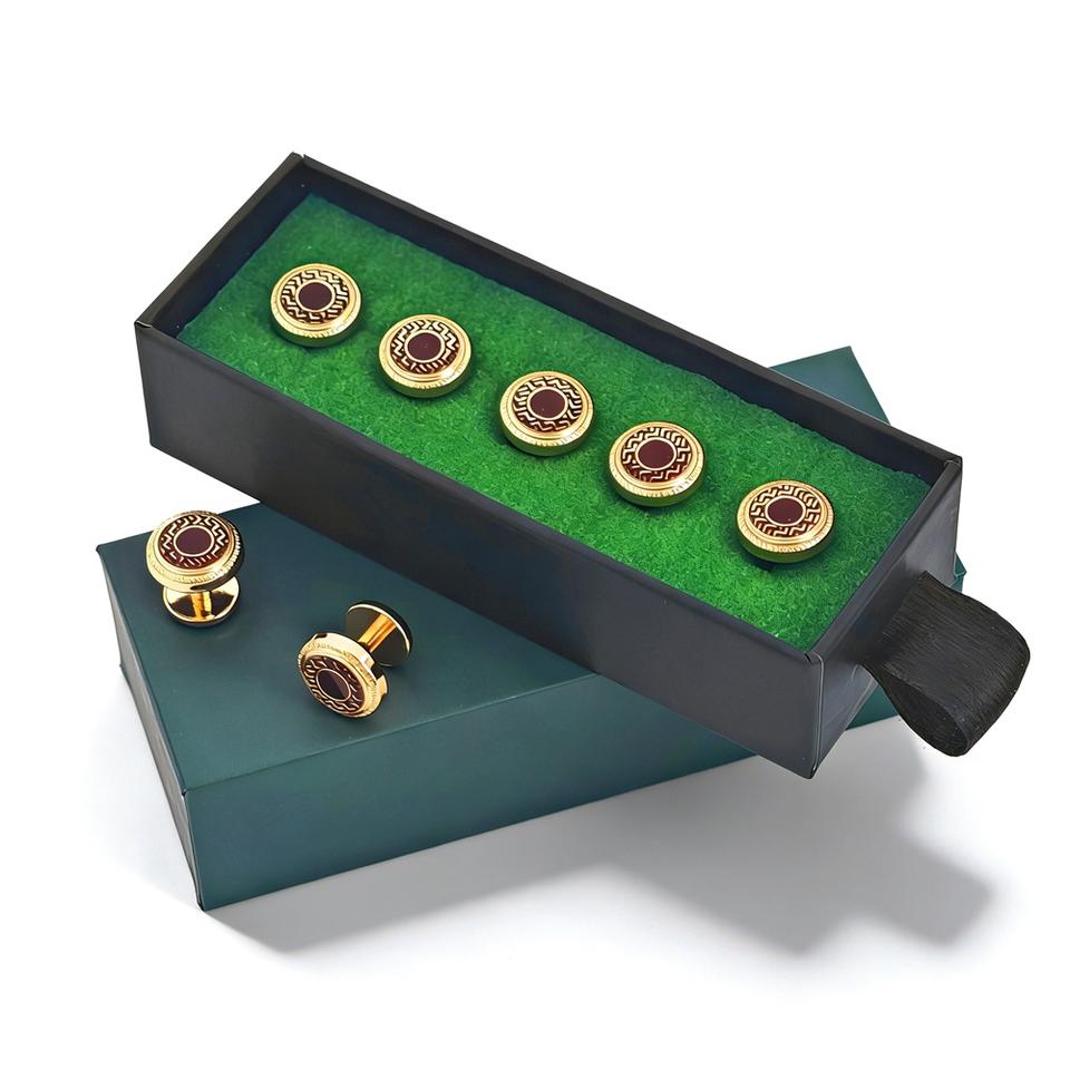 โรงงานกระดุมคุนชูโอะ กระดุมบาจูมาลัยยูสีดำทอง สำหรับเสื้อผ้า กระดุมโลหะแบบมาเลย์ สั่งทำโลโก้แบรนด์ได้ สำหรับเสื้อผ้าบาจูมาลัยยู