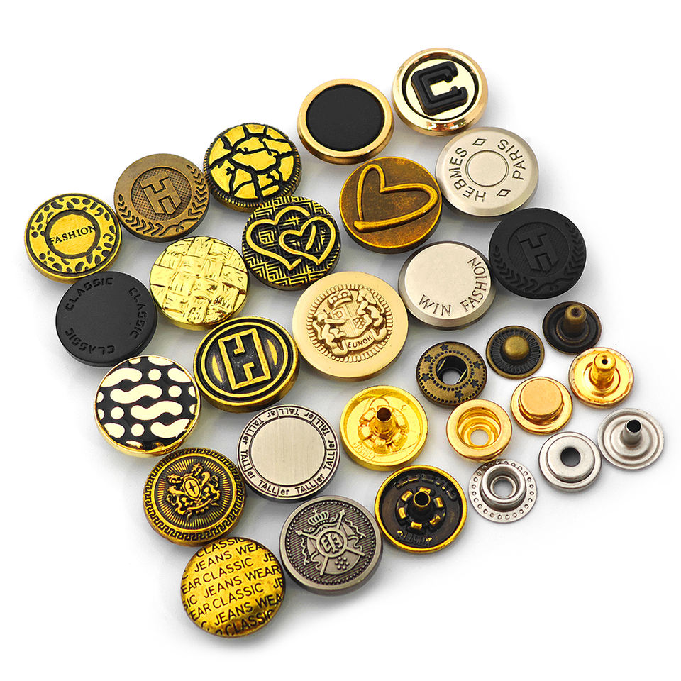 ปุ่ม kunshuo เสื้อผ้าโรงงานเสื้อผ้ากระดุมทองแบบ4ส่วนกระดุมติดโลโก้แบรนด์ตามสั่งสำหรับกระเป๋าเสื้อผ้า