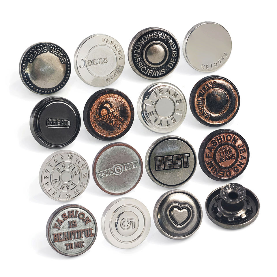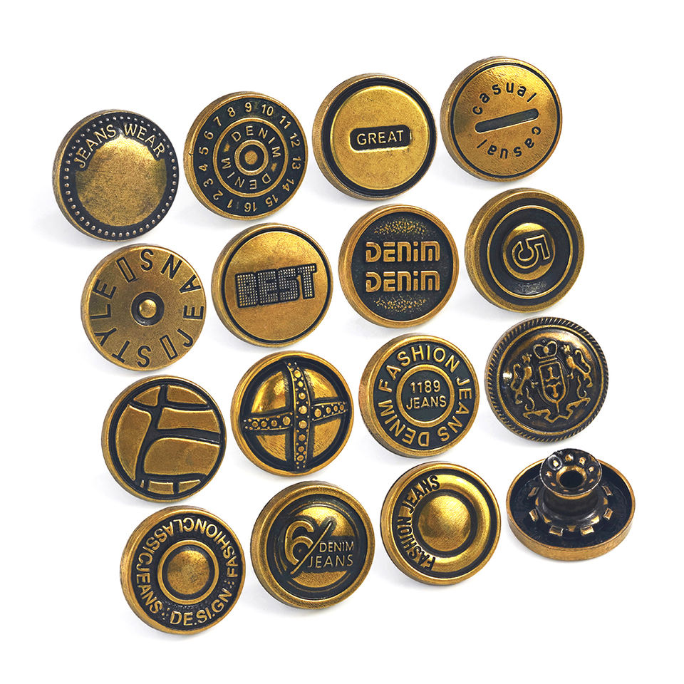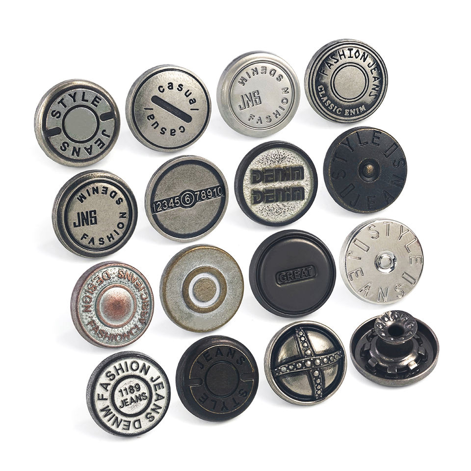 ปุ่ม kunshuo สำหรับกางเกงยีนส์กระดุมโลหะสีเงินสำหรับกางเกงยีนส์ชุด zamac และ rivets ทำโลโก้แนววินเทจตามสั่ง