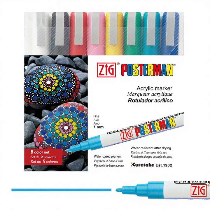 [KURETAKE] ชุดปากกาเมจิกสำหรับงานศิลปะ ZIG POSTERMAN ขนาดกลาง 8 สี สำหรับเขียนบนกระดาษ/แก้ว/โลหะ ไม่ลบได้ เขียนได้ด้านเดียว