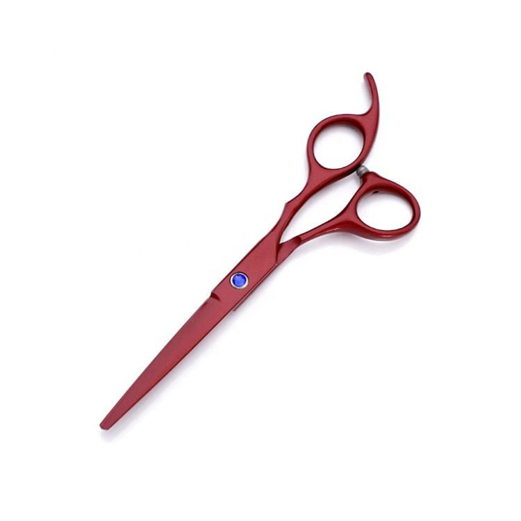 Kaamir อุปกรณ์ร้านเสริมสวยชุดกรรไกรตัดผมและผอมบางสีแดงพร้อมด้ามจับเหล็กใบมีดสแตนเลสปลายแหลม