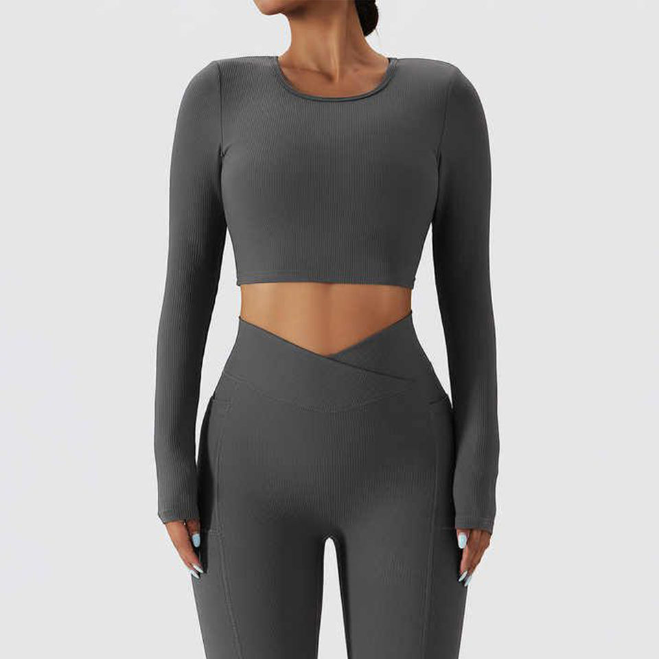 Kaasas ชุดออกกำลังกายแขนยาว2ชิ้นสำหรับผู้หญิงเสื้อผ้าเล่นฟิตเนสเล่นกีฬาโยคะสินค้าออกใหม่