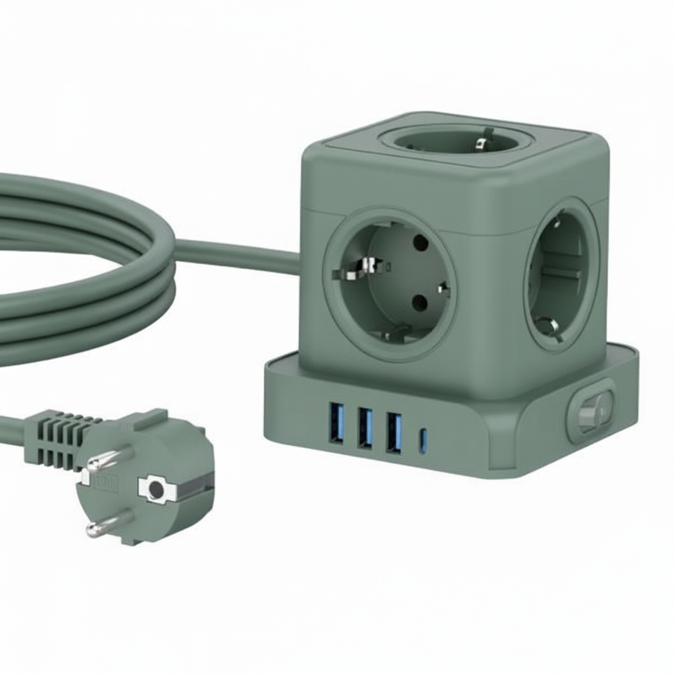 อะแดปเตอร์แปลงไฟแบบ All-in-One ยี่ห้อ Kabbol 5 ช่องเสียบแบบยุโรป พร้อมพอร์ต USB-C PD ชาร์จเร็ว 18W ปลั๊กพกพาอเนกประสงค์