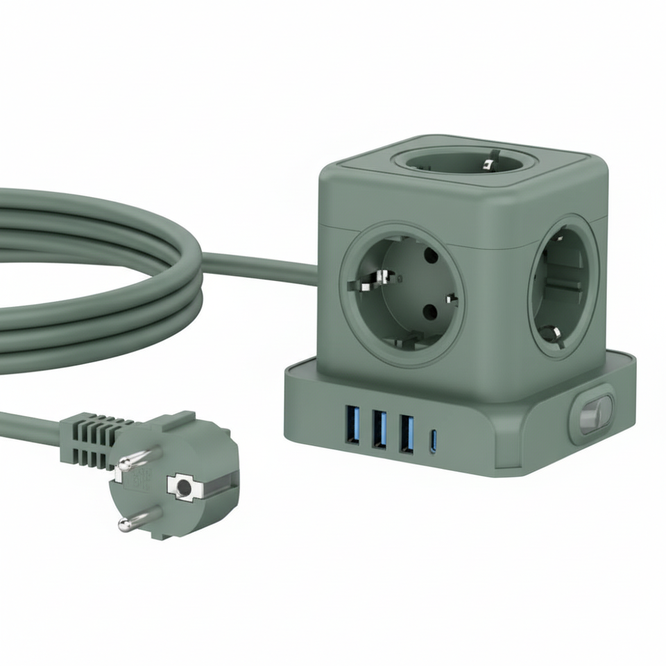อะแดปเตอร์แปลงไฟแบบออลอินวัน Kabbol 5 ช่องเสียบแบบยุโรป พร้อมพอร์ต USB-C PD 30W ปลั๊กพกพาอเนกประสงค์ วัสดุ ABS