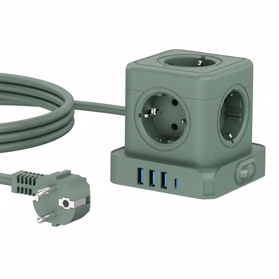 อะแดปเตอร์แปลงไฟแบบออลอินวัน Kabbol 5 ช่องเสียบแบบยุโรป พร้อมพอร์ต USB 3A1C รองรับการชาร์จ PD แบบพกพา วัสดุ ABS