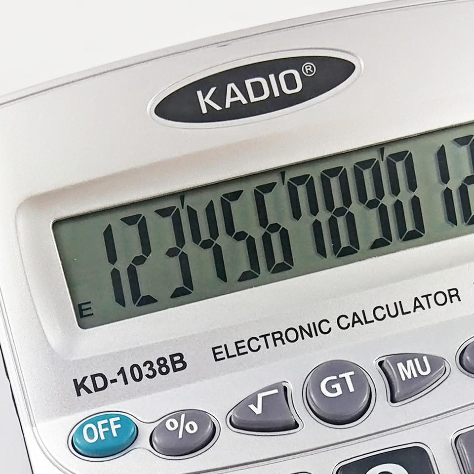 คาดิโอเครื่องคิดเลขอิเล็กทรอนิกส์ 12 หลัก แหล่งจ่ายไฟคู่ สำหรับใช้ในสำนักงาน ทางการเงิน KD-1038B สีเงิน