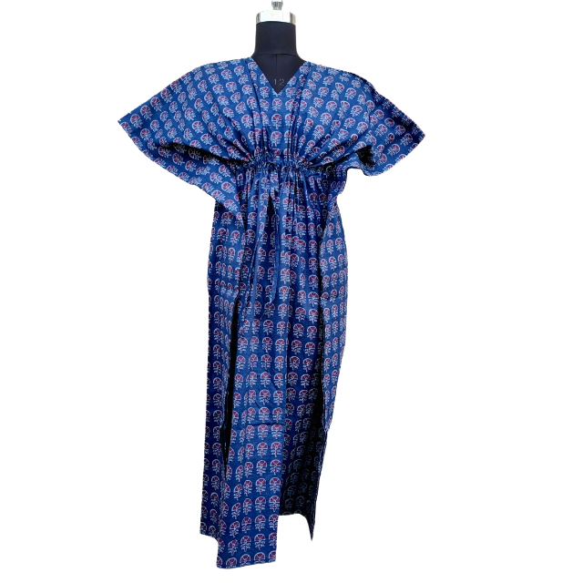 ชุดเดรสยาวสำหรับผู้หญิงผ้าฝ้ายพิมพ์ลายบล็อกด้วยมือ