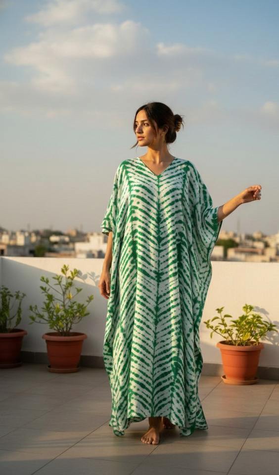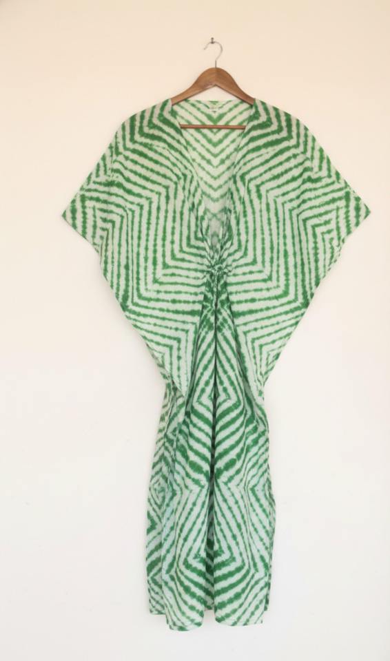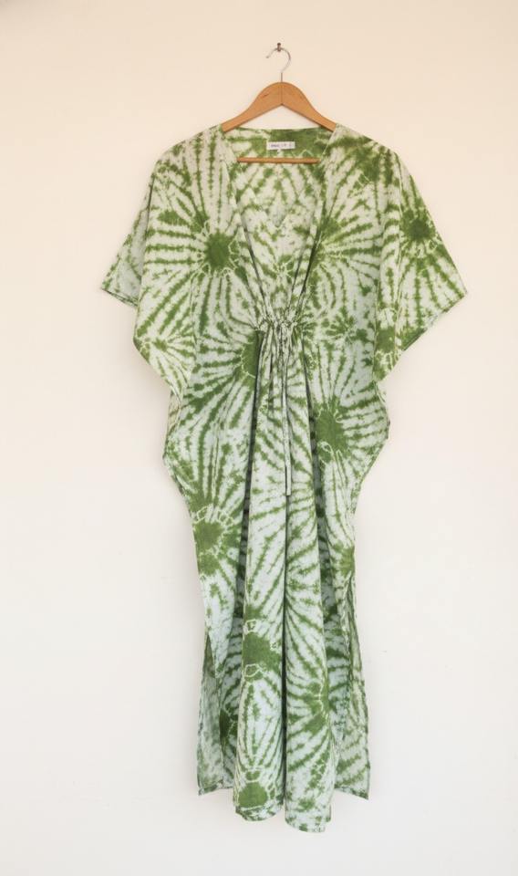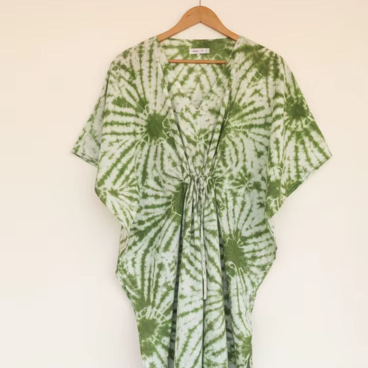 ชุดเดรสคาฟทันคอวีแบบย้อมสีชิโบริ ดีไซน์รักษ์โลก ซักได้ สีชมพู ผ้าฝ้าย เหมาะสำหรับใส่ไปเที่ยวพักผ่อน
