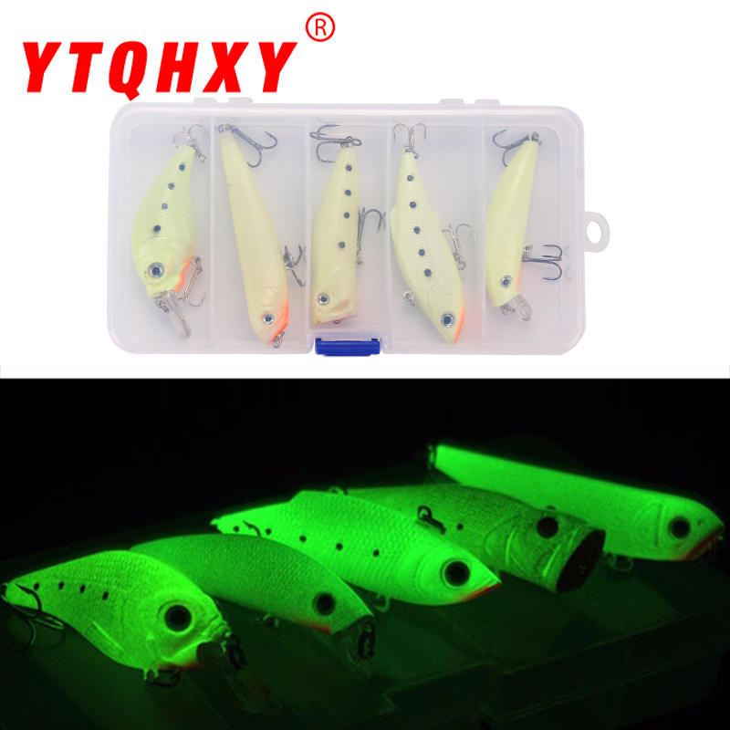 ชุดเหยื่อตกปลาไคเฟิง เรืองแสงในที่มืด เหยื่อแข็งแบบมิโนว์ ชับบี้ วีไอบี เพนซิล ป๊อปเปอร์ เหยื่อผิวน้ำ สำหรับตกปลาแบส ชุด 5 ชิ้น