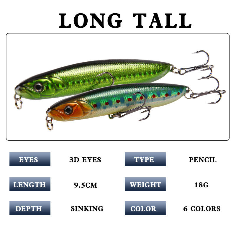 เหยื่อปลอมไค่เฟิง 9.5 ซม. 18 กรัม แบบจมน้ำ สำหรับตกปลาแมคเคอเรลในน้ำจืด
