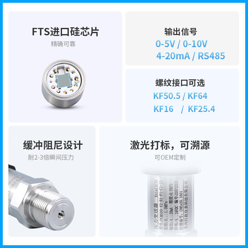 เครื่องส่งสัญญาณความดันป้องกันการระเบิด Kaihong PCM500 ExiaIICT6 4-20mA สแตนเลสสตีล IP65 เซ็นเซอร์อุตสาหกรรม
