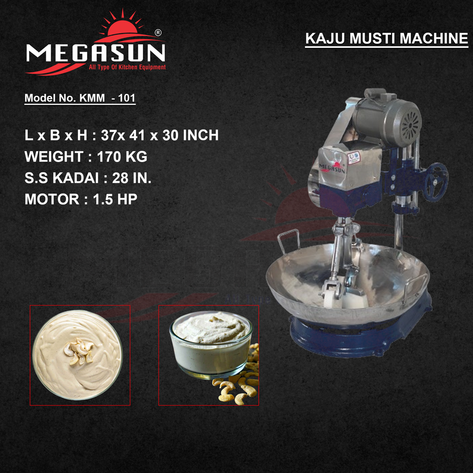 เครื่องจักรฟังก์ชั่น:บดหรือผสมเม็ดมะม่วงหิมพานต์เพื่อทำแป้งหรือผสมหวานสำหรับขนมหวานเช่น Kaju katli ม้วนคาจูฯลฯการบดและการผสมสม่ำเสมอ