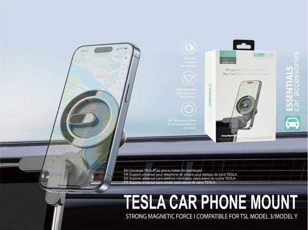 ที่ยึดโทรศัพท์แม่เหล็กแบบยืดหยุ่น Kakusiga หมุนได้ 360 องศา แม่เหล็กแรงสูง สำหรับติดตั้งในรถยนต์ Tesla Model 3/Y บนแผงหน้าปัด
