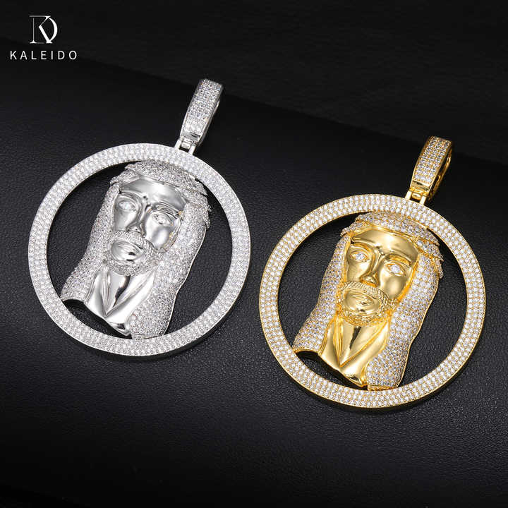 จี้พระเยซูแบบฮิปฮอปชุบทอง ประดับเพชรซิคอน 5A ระยิบระยับ สำหรับผู้ชาย จาก Kaleido Wholesale Jesus Series