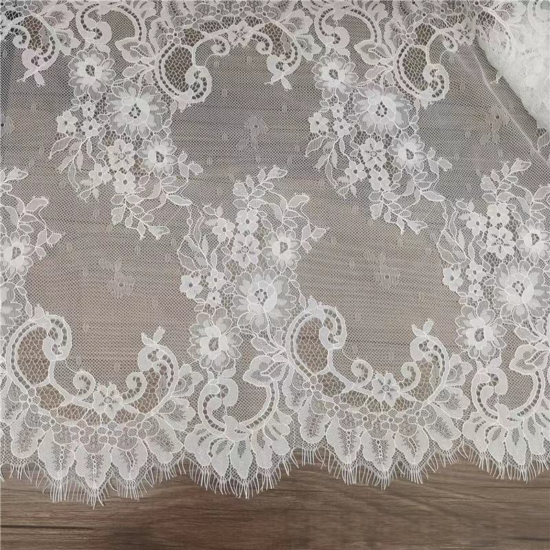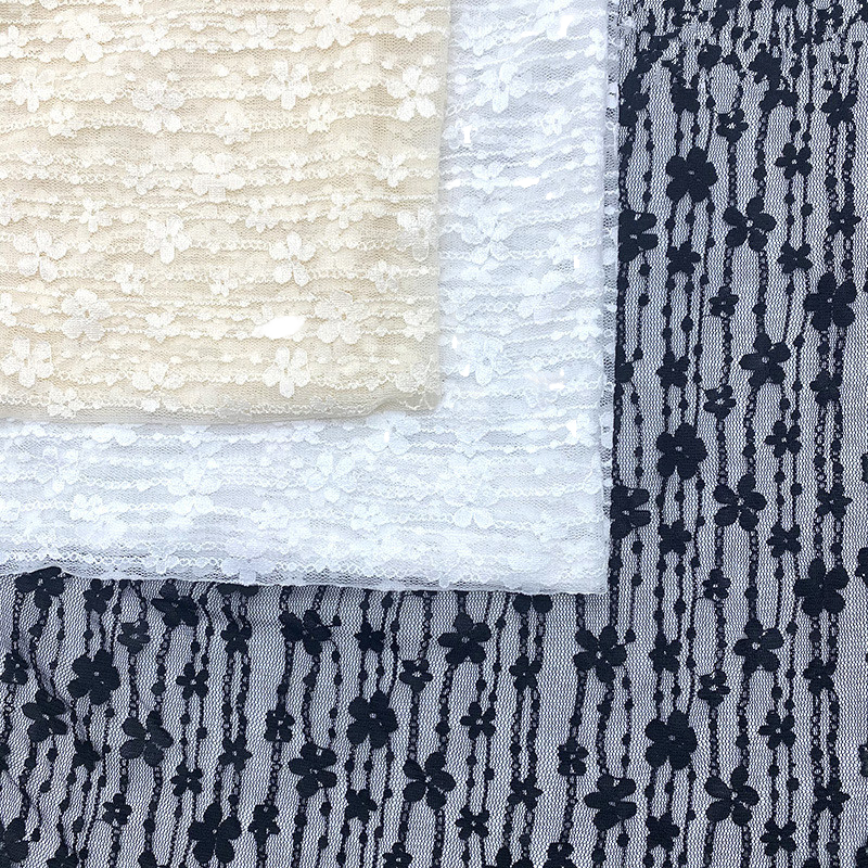 Kalong Leifang Chain Flowers Voile Lace Fabric Spandex Nylon Stretchy Knitting for Dresses Skirts Home Textiles 5''+ Width