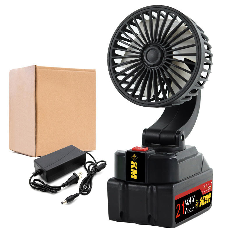 พัดลมไฟฟ้าพกพา Kam 21V Max ใช้แบตเตอรี่แบบชาร์จได้ สำหรับใช้งานกลางแจ้ง สีดำ มอเตอร์ DC