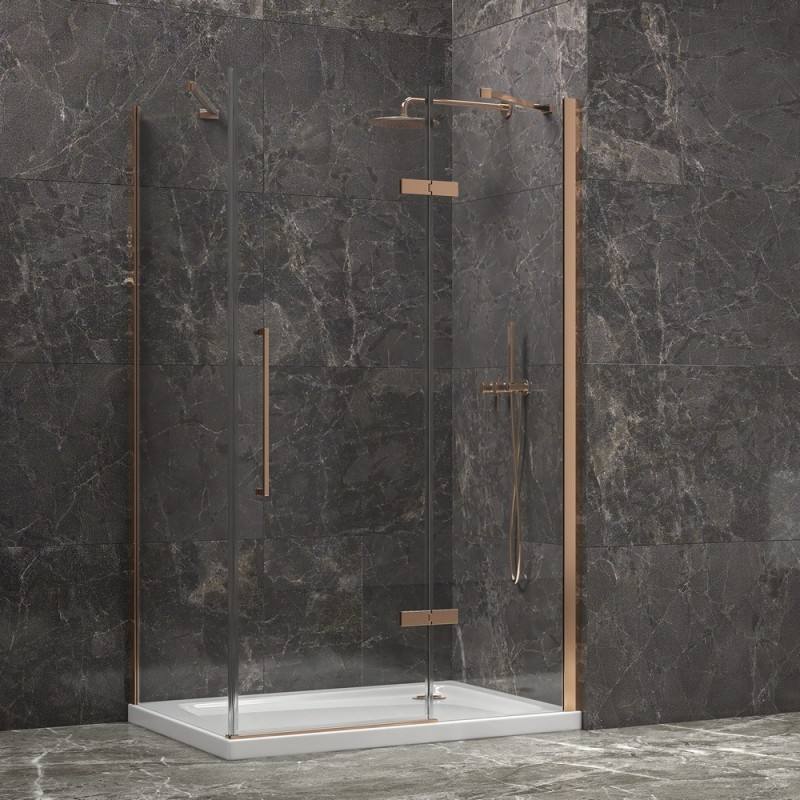 Kamalu ตู้อาบน้ำ KT5000RG ทันสมัย80x120กรอบสีทองแดงประตูบานพับด้านข้างคงที่80ซม. พับได้/เลื่อนห้องนอน/ห้องน้ำ