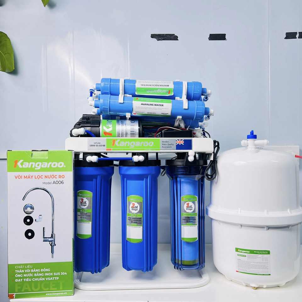 เครื่องกรองน้ำ Kangaroo KG75F7 ระบบ RO 7 ขั้นตอน สแตนเลส สีขาว/ดำ ควบคุมผ่านแอป ทำความสะอาดตัวเองได้ ใช้ในครัวเรือน รับประกัน 1 ปี