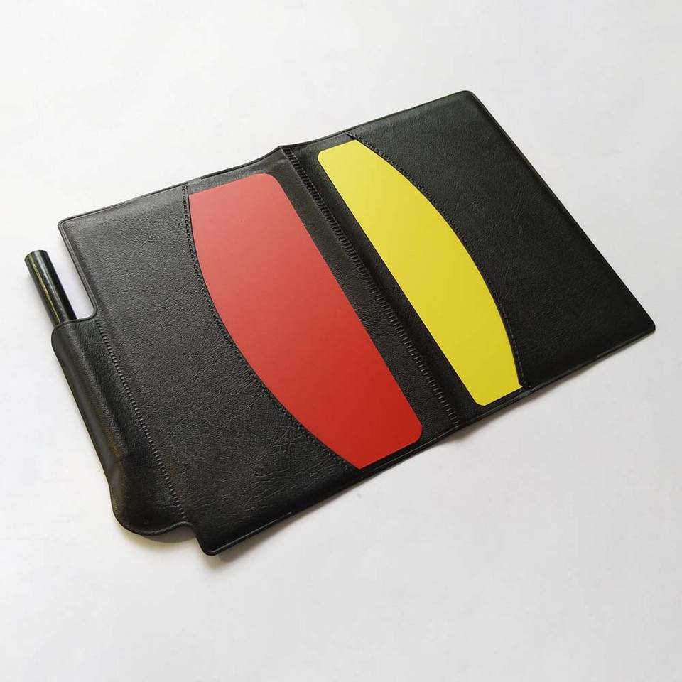 ชุดกรรมการฟุตบอลคังซง ประกอบด้วยนกหวีดเหล็ก ใบเหลือง ใบแดง กระเป๋าหนัง และสมุดบันทึกคะแนน (รุ่น KSE-018A)