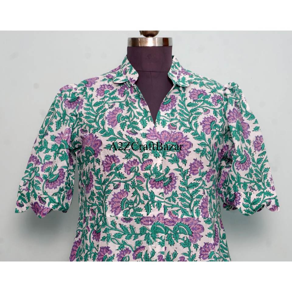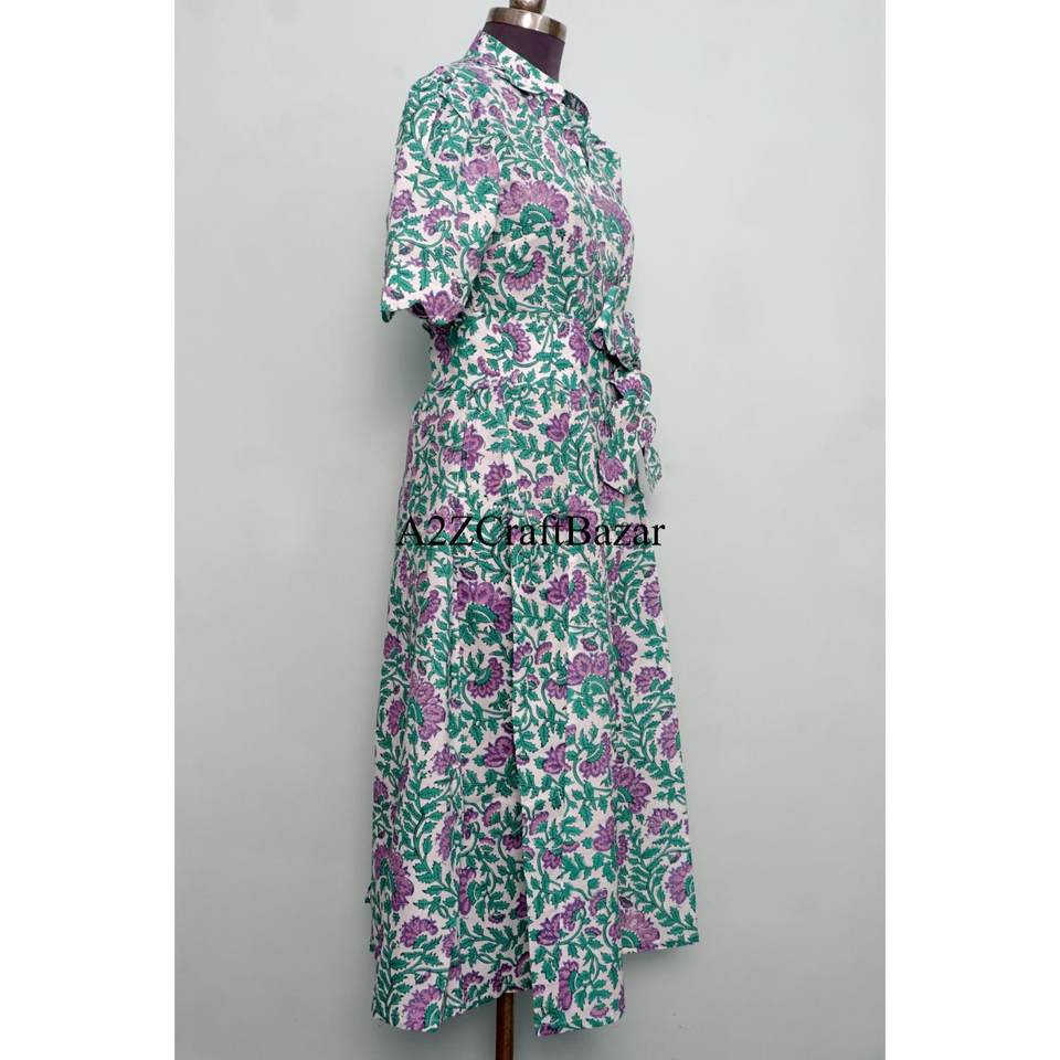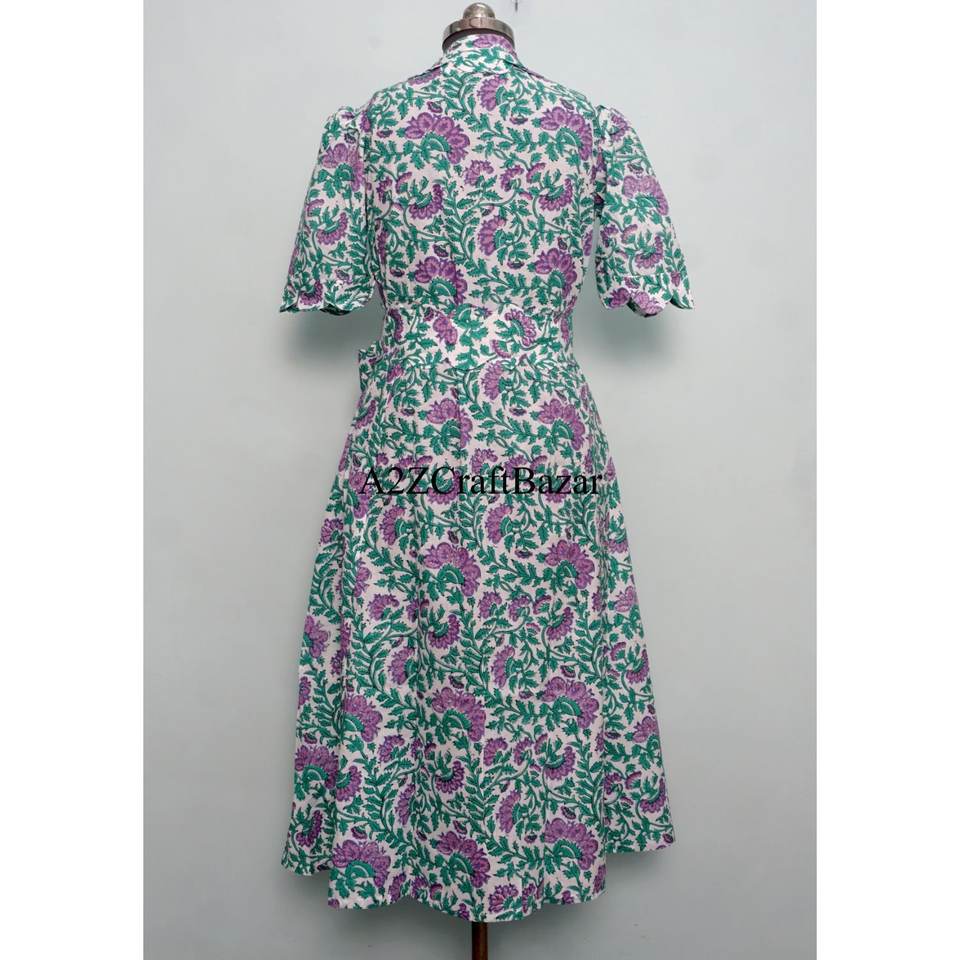 ชุดเดรสผู้หญิง Kangura รุ่นรักษ์โลก ผ้าฝ้าย 100% ลายดอกไม้ ความยาวปานกลาง สไตล์ Kangura คอวี แขนสั้น ตกแต่งกระดุม ซักได้