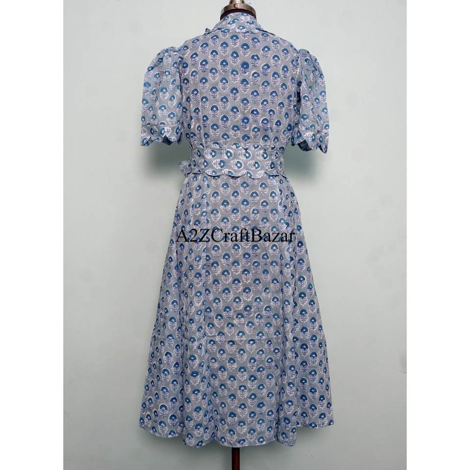 ชุดเดรสผู้หญิง Kangura รุ่นรักษ์โลก ผ้าฝ้าย 100% ลายดอกไม้ ความยาวปานกลาง สไตล์ Kangura คอวี แขนสั้น ตกแต่งกระดุม ซักได้