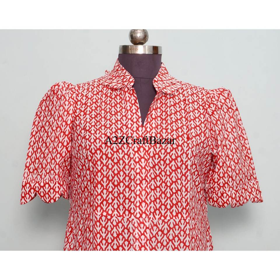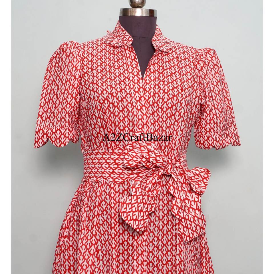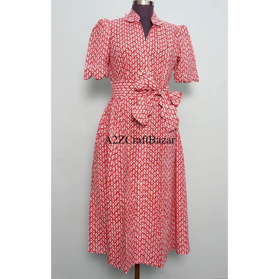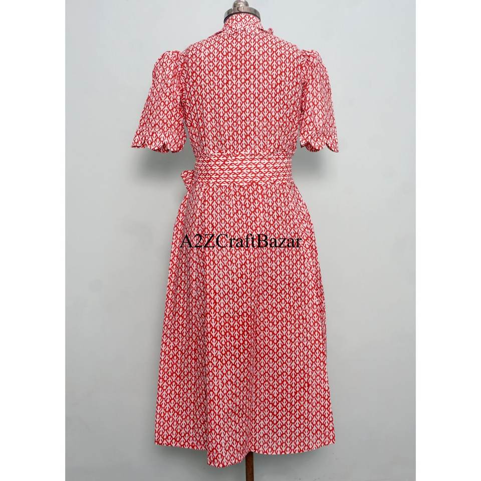 ชุดเดรสผู้หญิง Kangura รุ่นรักษ์โลก ผ้าฝ้าย 100% ลายดอกไม้ ความยาวปานกลาง สไตล์ Kangura คอวี แขนสั้น ตกแต่งกระดุม ซักได้