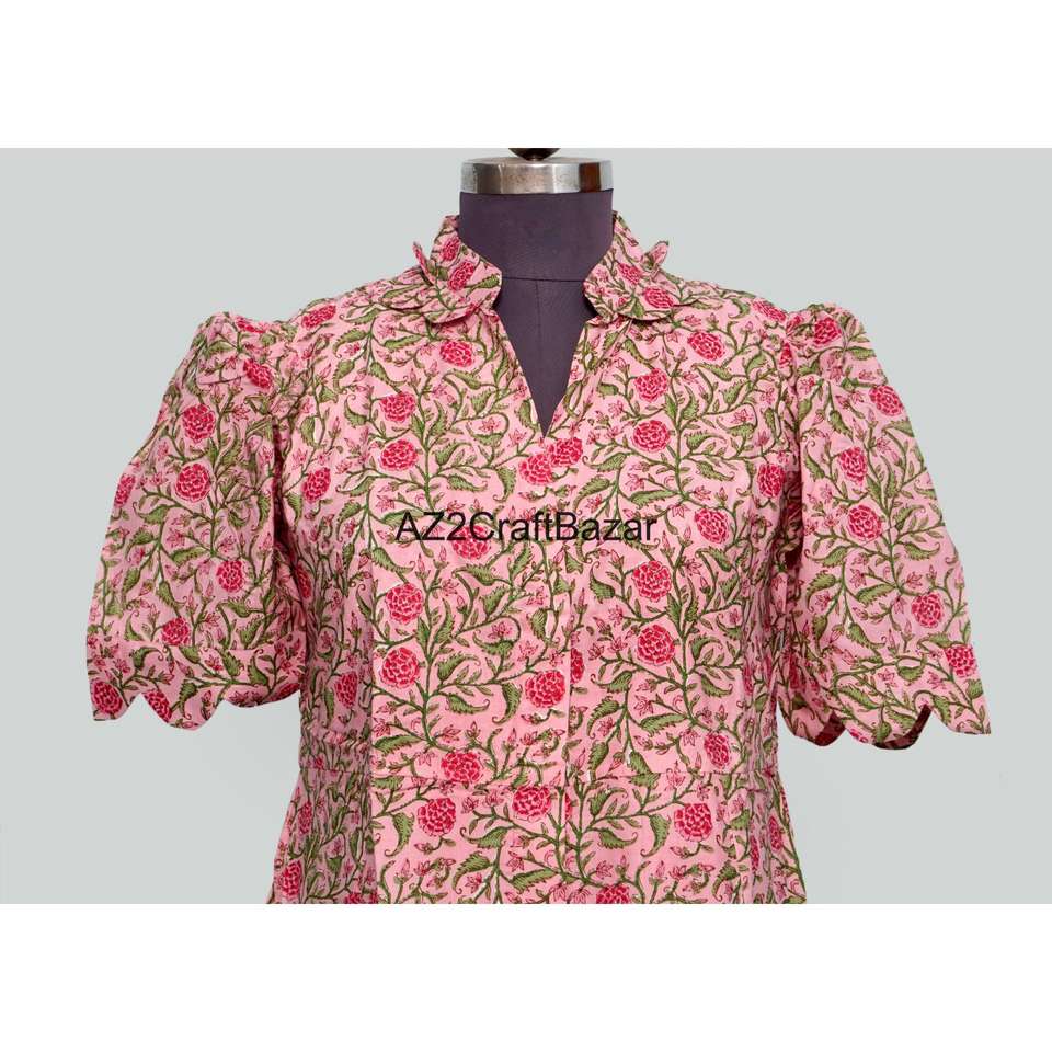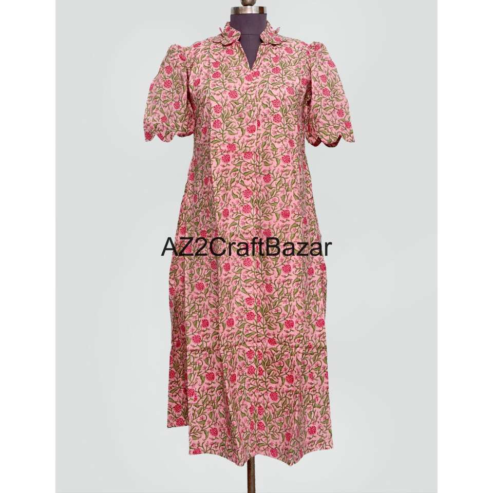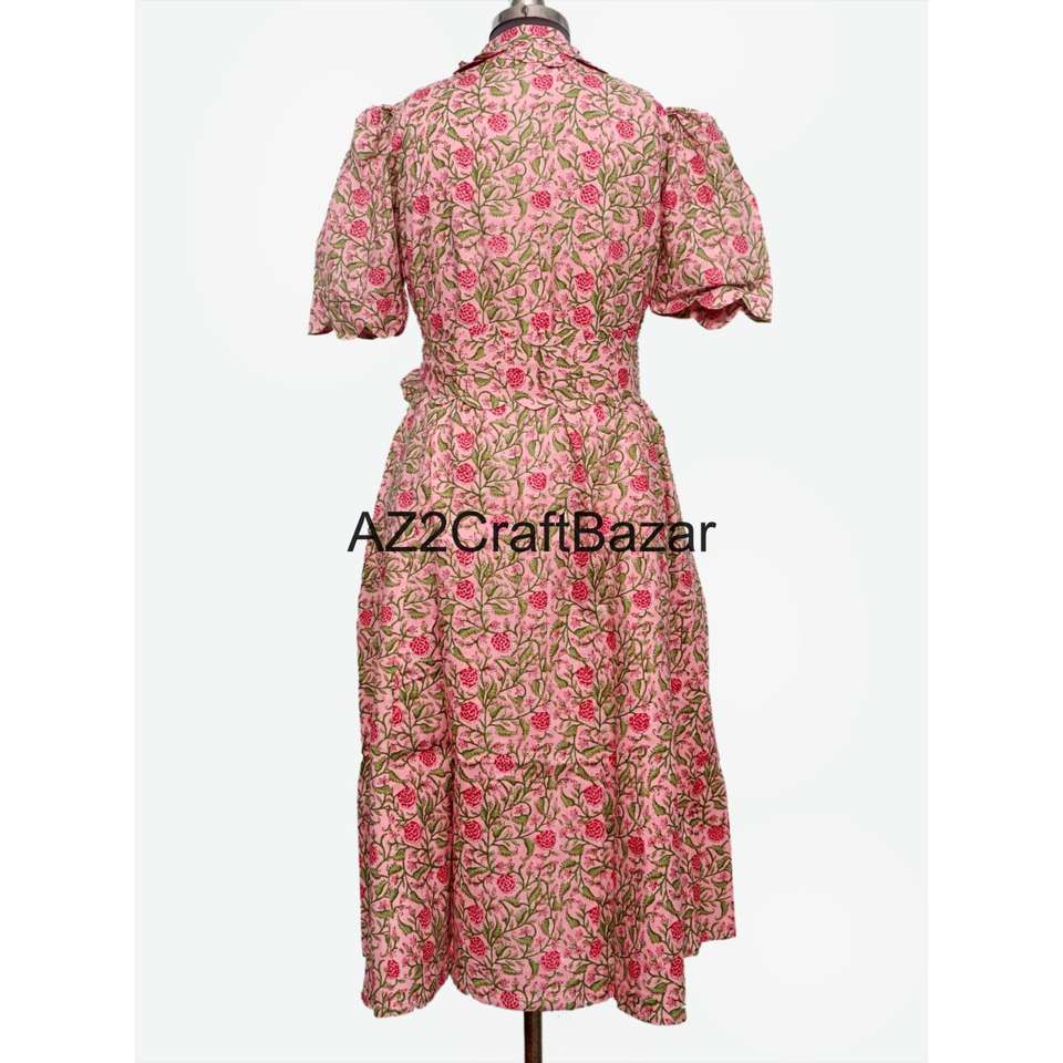 Kangura Women's Eco-friendly 100%Cotton Floral Midi Dress Kangura Style V-Neck Short Sleeve Button Decoration Breathable A-Line