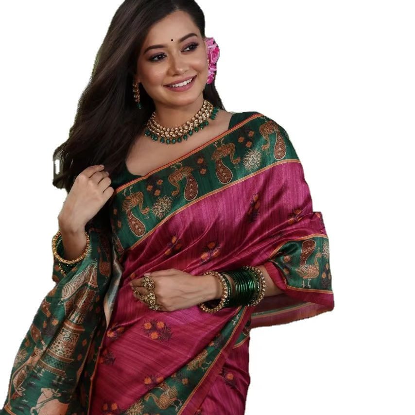 ผ้าไหมกันจิววารัม จอร์เจตต์ สำหรับผู้หญิง สวมใส่ได้ทั้งงานพูจาและงานเลี้ยงสบายๆ สีสันสดใส ผ้าซารีแบบยาวพร้อมเสื้อคลุมสำเร็จรูป