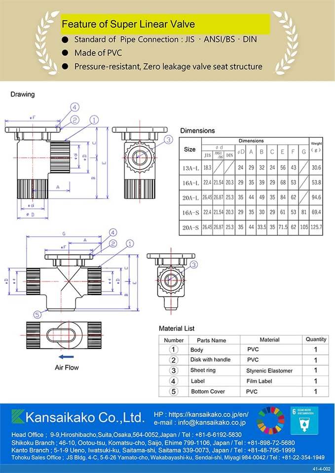ระบบท่ออากาศ Kansaikako P49-005 วาล์วควบคุมการไหลของอากาศแบบสัดส่วน PVC น้ำหนักเบา ซุปเปอร์ลิเนียร์ พอร์ต 16A แรงดันต่ำ