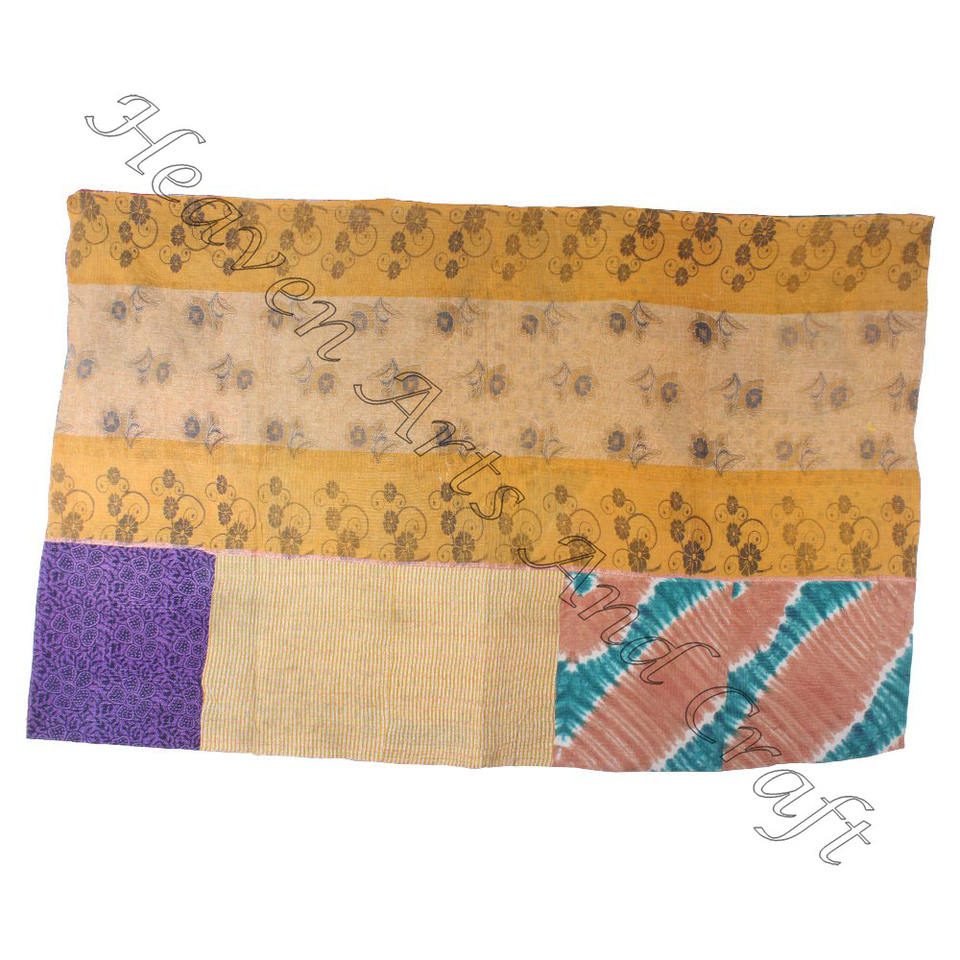 Kantha ผ้านวม gudari GD073 Kantha ผ้าห่ม gudari อินเดียกลับด้านได้เย็บผ้าห่มส่าหรีแบบเก่าทำงานหนัก