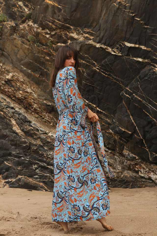 ชุดกิโมโนยาวโบฮีเมียนผ้าไหมทำด้วยมือหลากสีชุดคลุมอาบน้ำสไตล์สวนพฤกษศาสตร์ใส่ได้ทั้งชายหญิงชุดคลุมอาบน้ำลายสวรรค์สำหรับฤดูร้อน